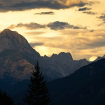 Am Mangart – dem vierthöchsten Gipfel der julischen Alpen – war ich mit Doris heuer im August. Es war die 3. Wanderung an einem verlängerten Wochenende, an dem wir unter anderem im Valbruna campiert haben. Diese Fotos hier sind von unserem zweiten Schlafplatz aus entstanden und zwar zwischen dem Predilsee und der Sella Nevea. Zwischen den beiden Fotos sind gerade einmal 10 Minuten vergangen – ist es nicht faszinierend, wie sich die Lichtstimmung in so kurzer Zeit so spektakulär verändern kann?